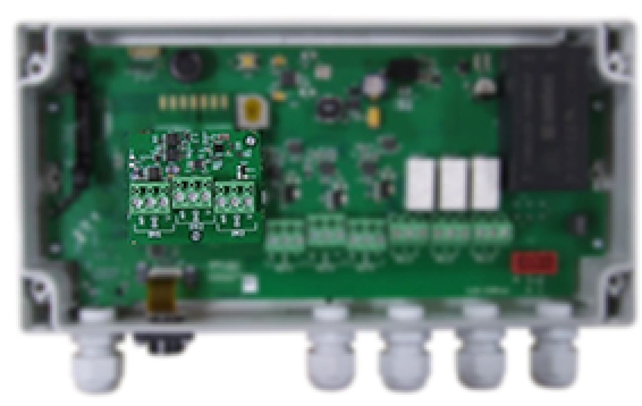 Interchangeable board, 3 current / voltage analogic input: 0-20 mA / 4-20 mA and 0-2,5 V / 0-5 V / 0-10 V, with terminals, CA310 transmitter.