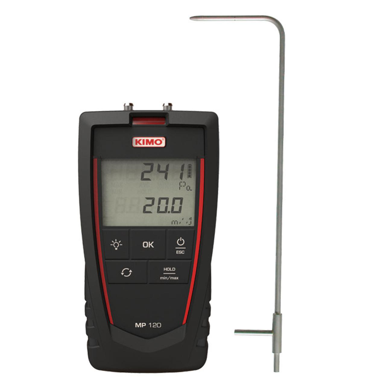 The Kimo MP 120 is a portable, handheld meter suitable for measuring pressure and air velocity.