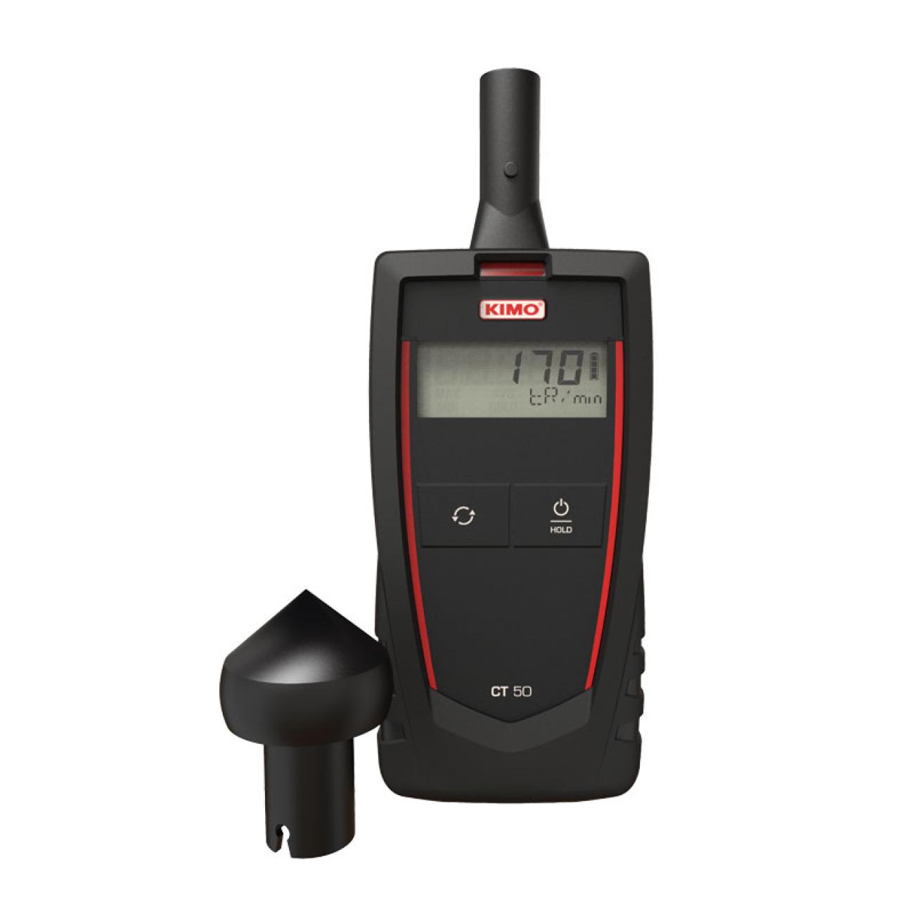 The portable Kimo CT 50 is a dual-function tachometer; it includes the ability to measure machinery speed using either direct contact or you can use the optical mode to measure without direct contact.