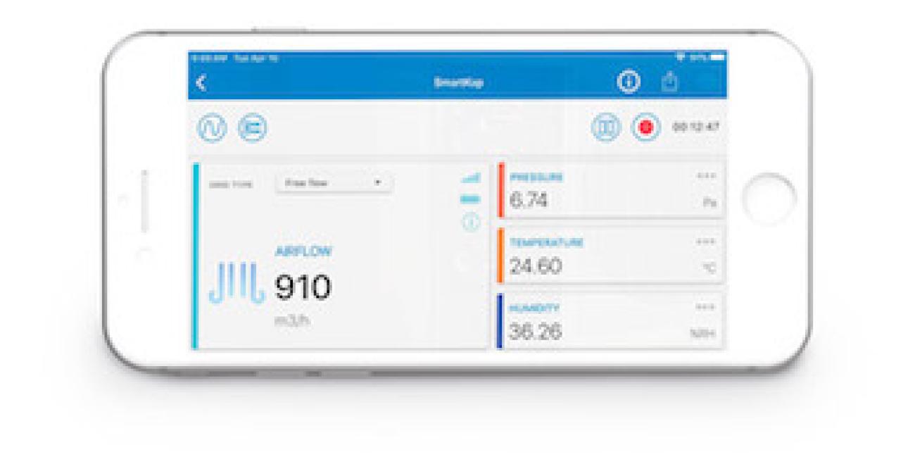 The DBM 620 Air Flow Meter comes equipped with the SmartKap mobile app. You can use SmartKap to connect to your DBM 620 via the wireless connection, allowing you to configure the device, as well as visualize and save its measurements.